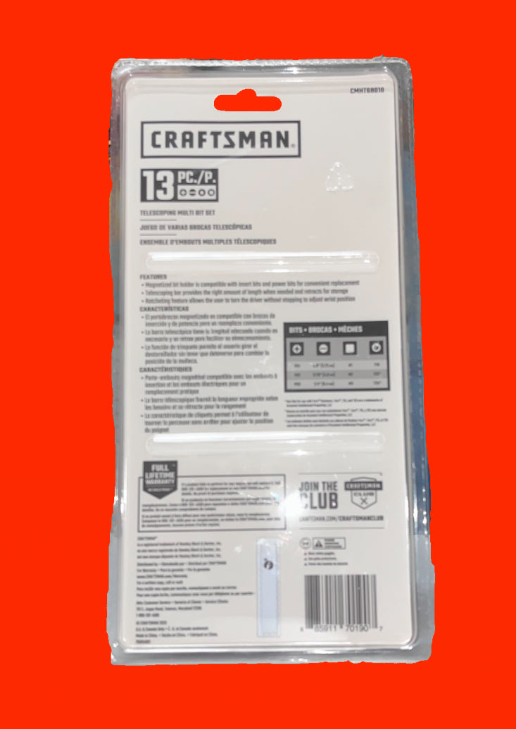 Craftsman's 13-piece telescoping multi-bit set delivers versatility and convenience in one compact tool. The magnetic bit holder securely grips insert... Read more